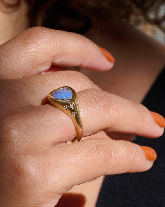 18k yellow gold, Opal, Diamonds