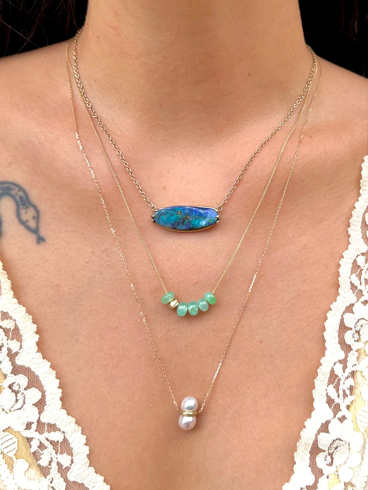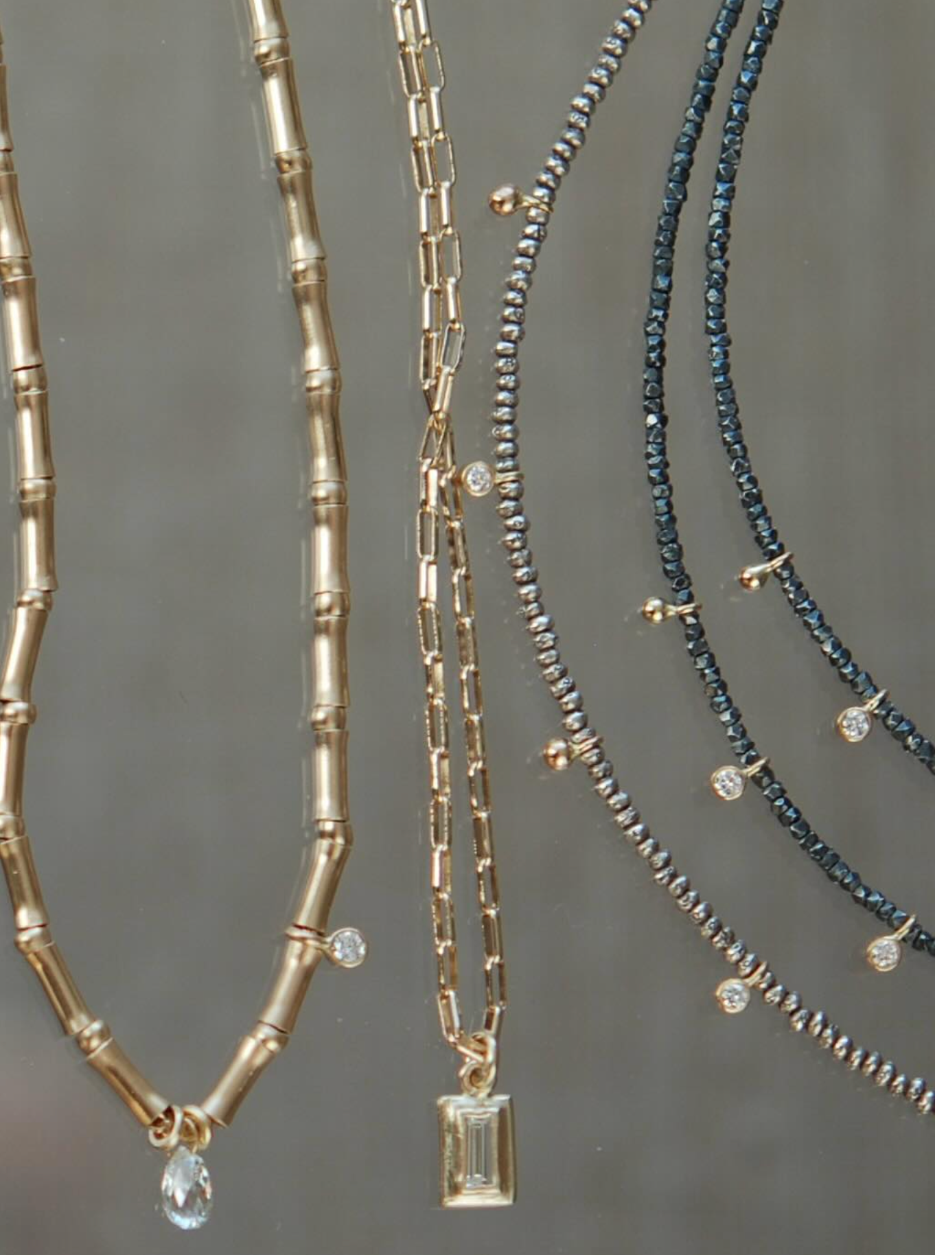 Highly stackable diamond and pearl pieces, to create your own layered look, reminiscent...