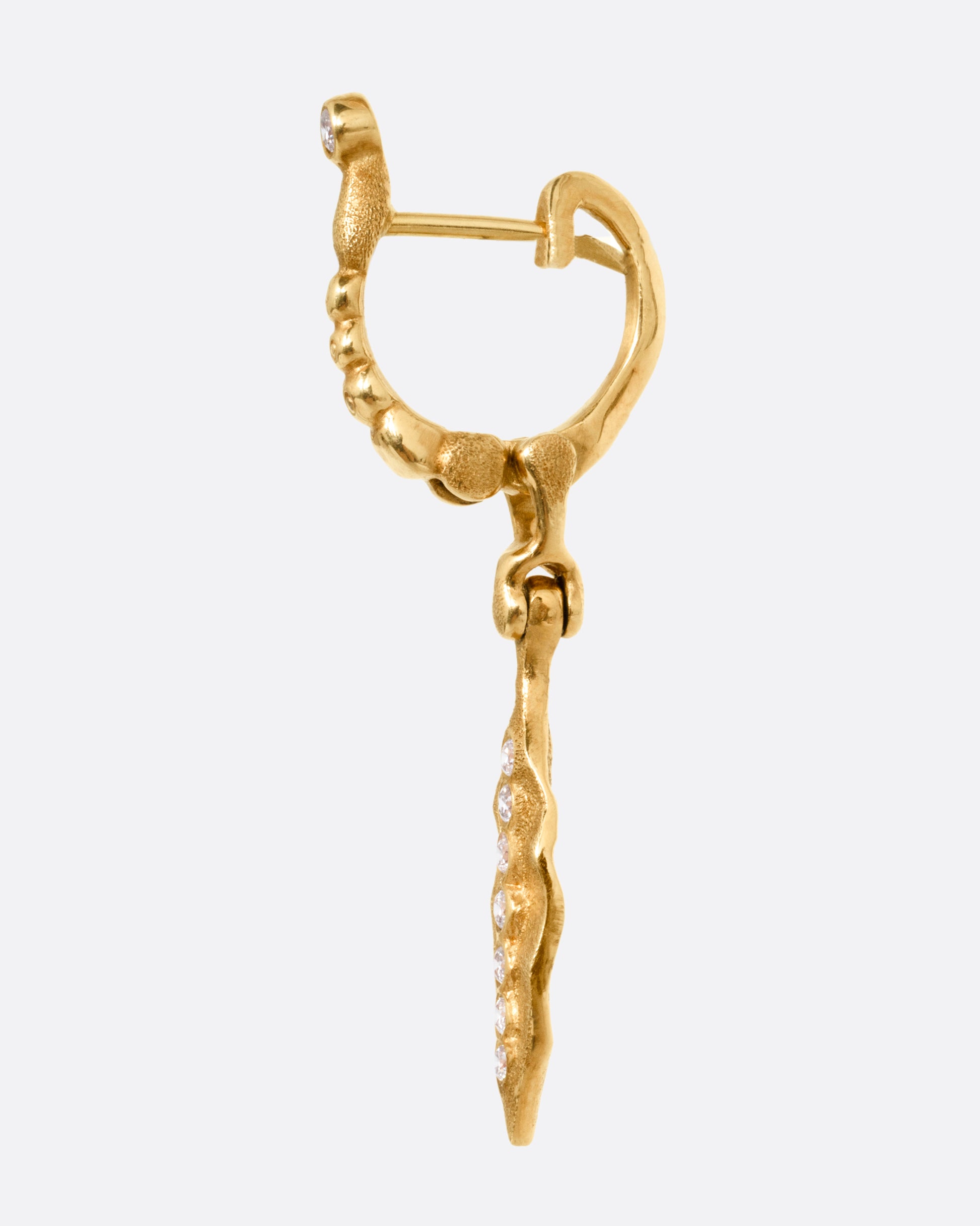 Diamond Leaf Drop Hoop Earring