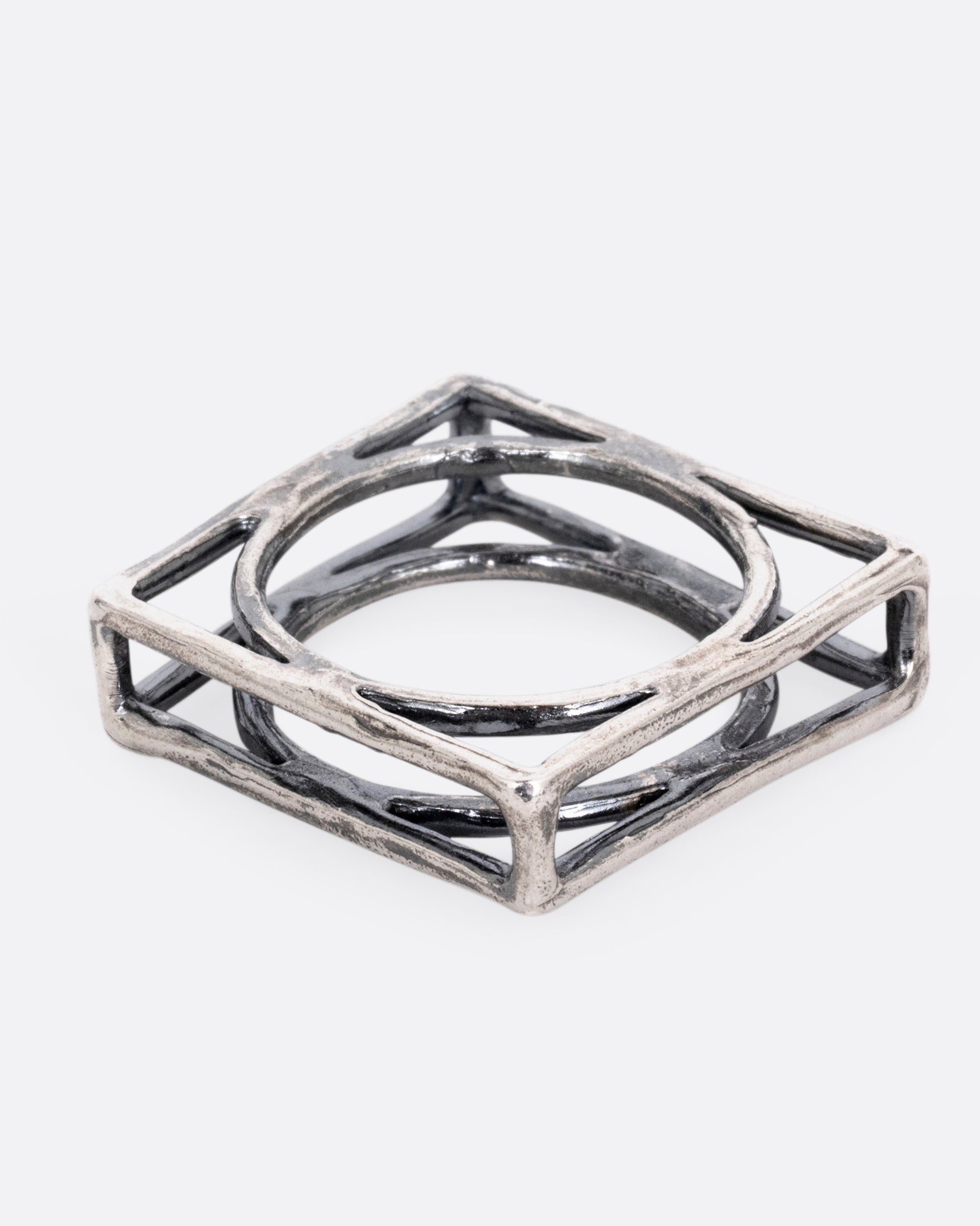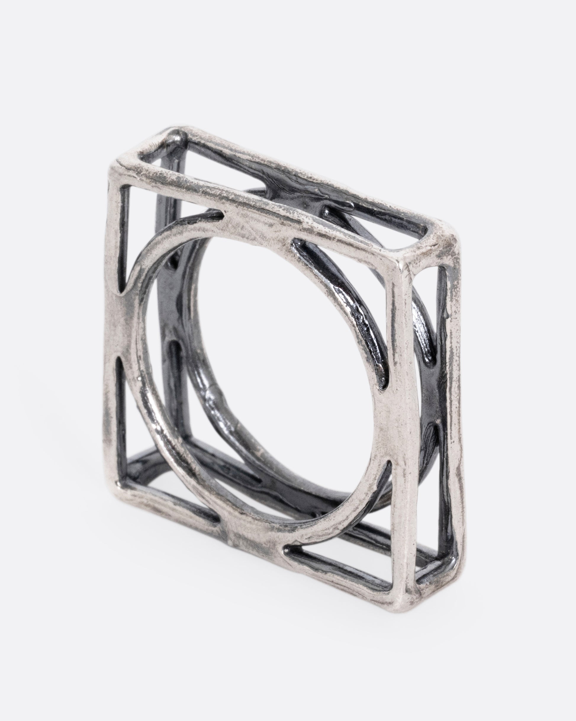 Architectural and sleek, this square band allows for a peek of skin amidst a stack, or makes a geometric statement worn solo.