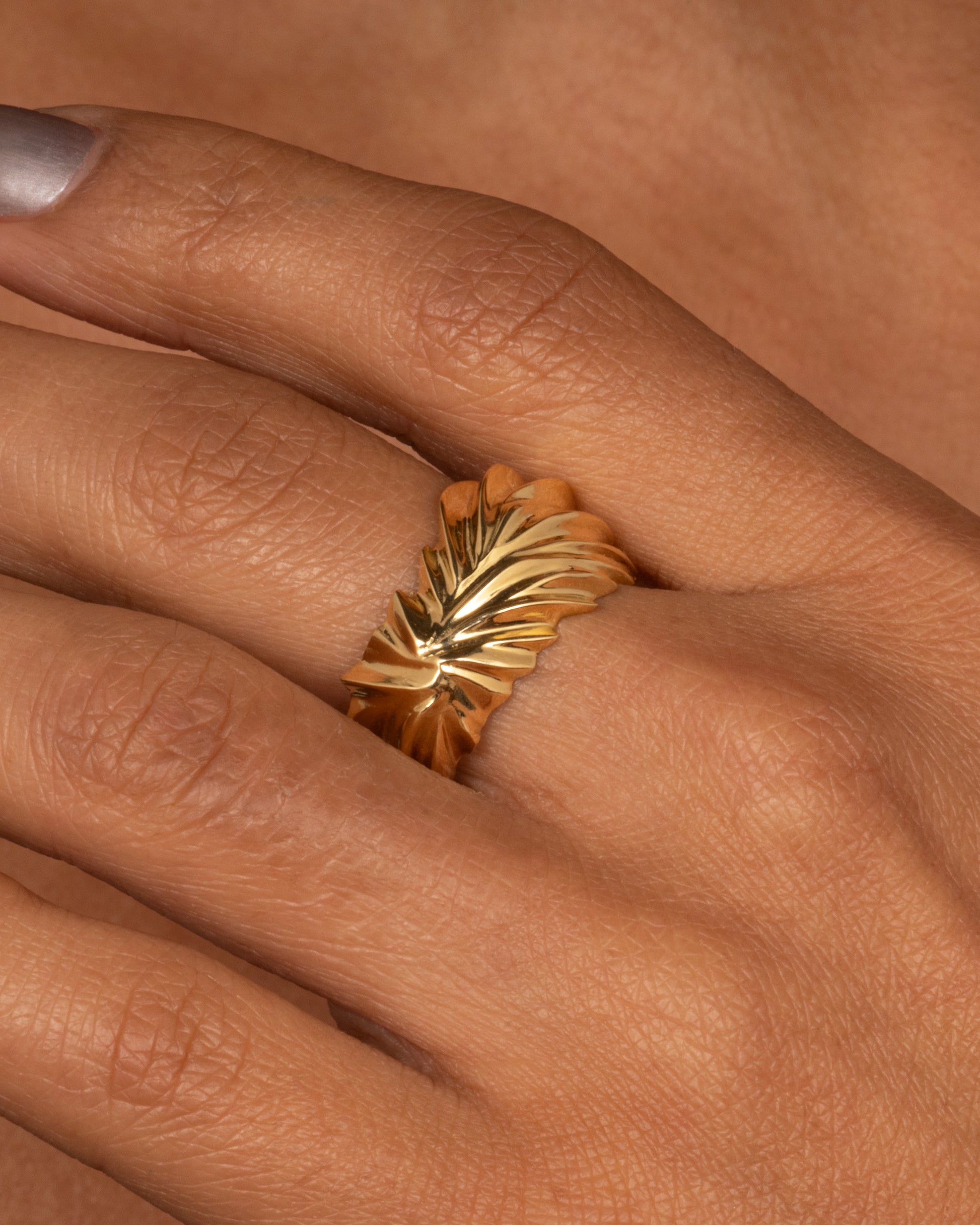 Wavy and chevron textures meet along this dimensional hand carved band. A captivating addition to your setup.