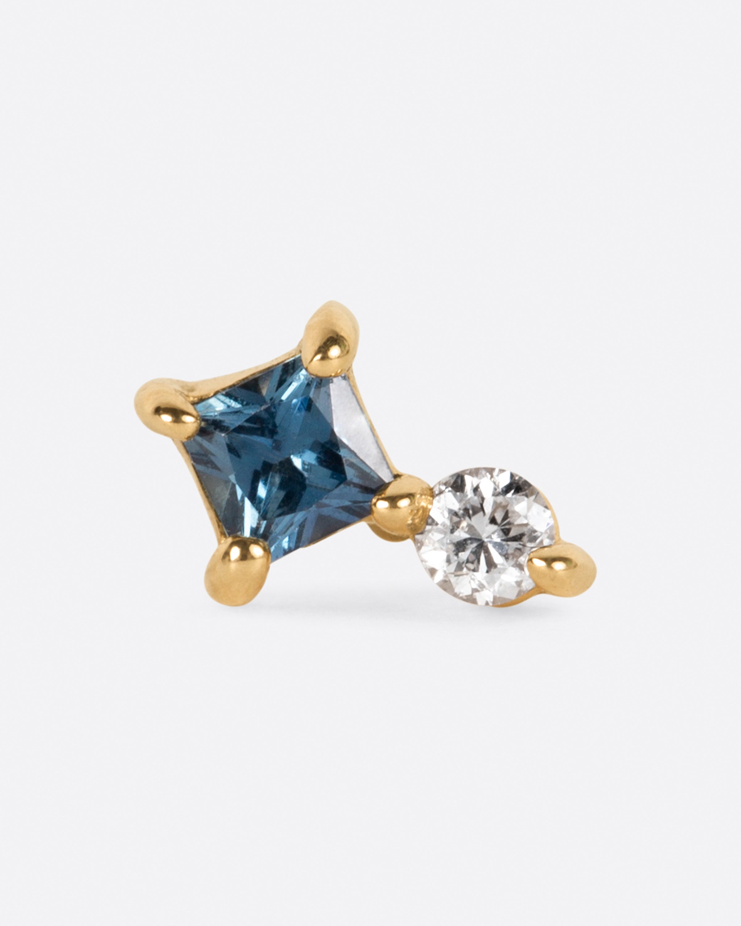 Add a flash of inky black to your curated earring set up with this princess cut diamond.