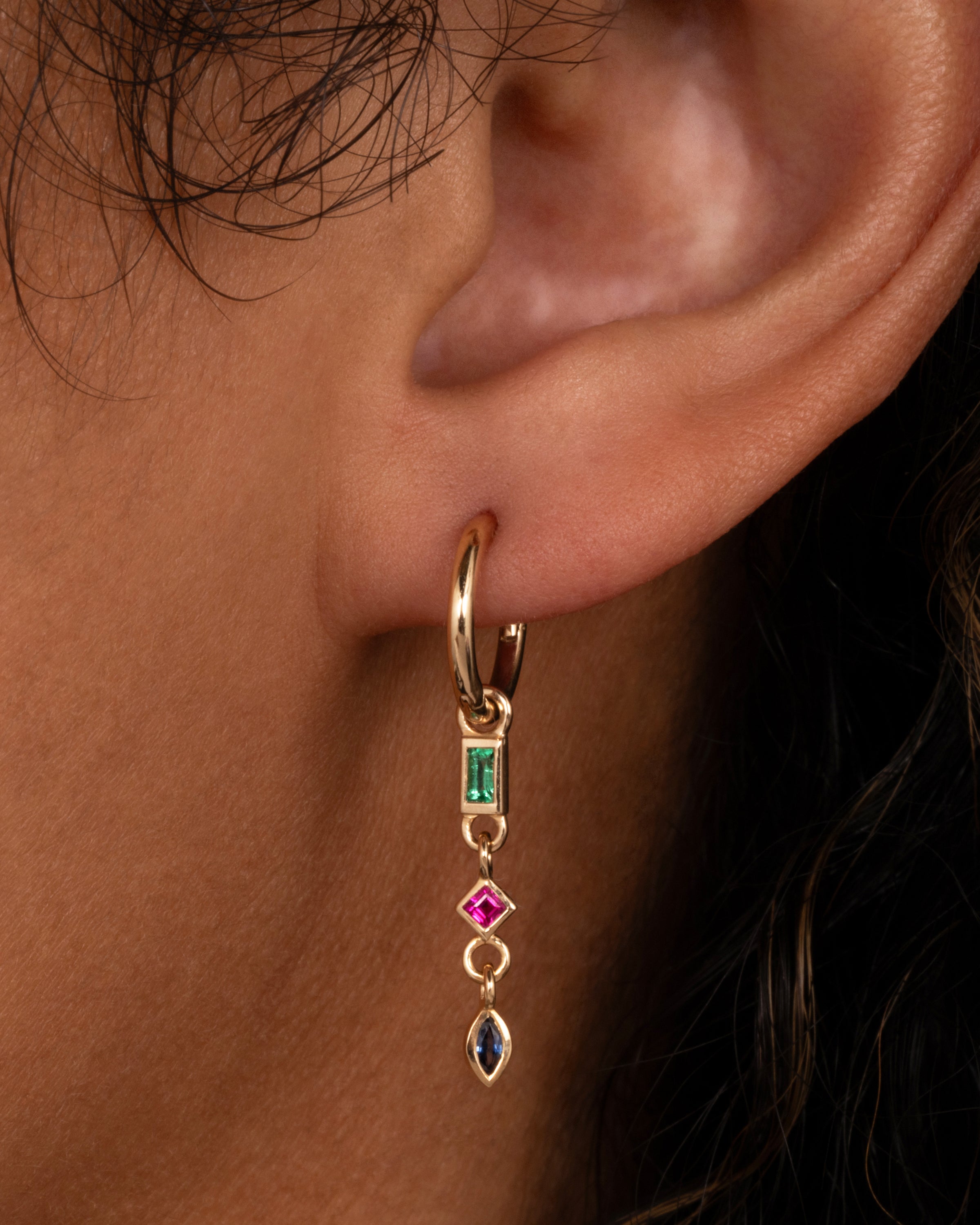 Add a vivid angular pop to your curated ear stack with this baguette cut turquoise