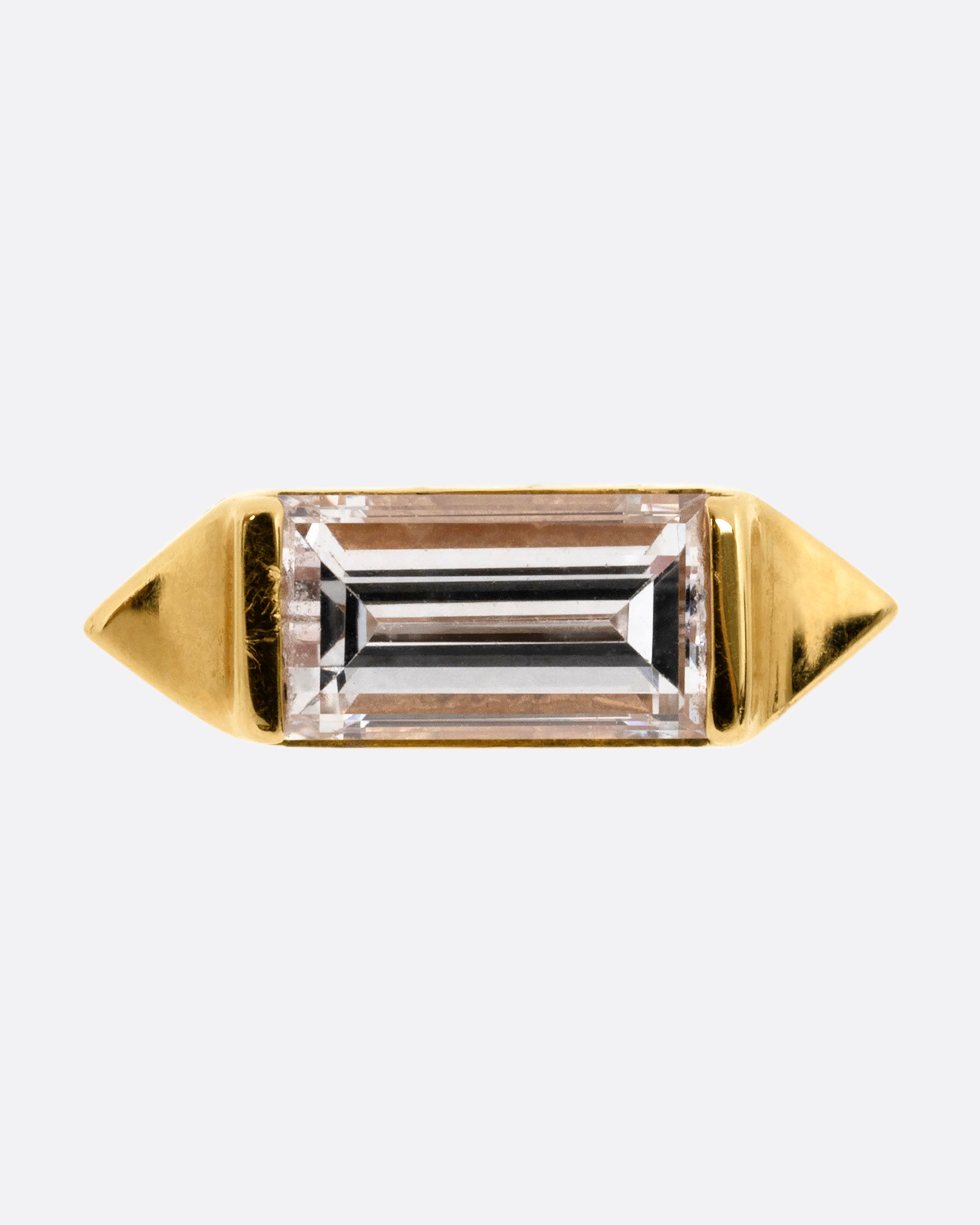 This substantial baguette diamond is bookended with points, adding an angular flash to your ear stack