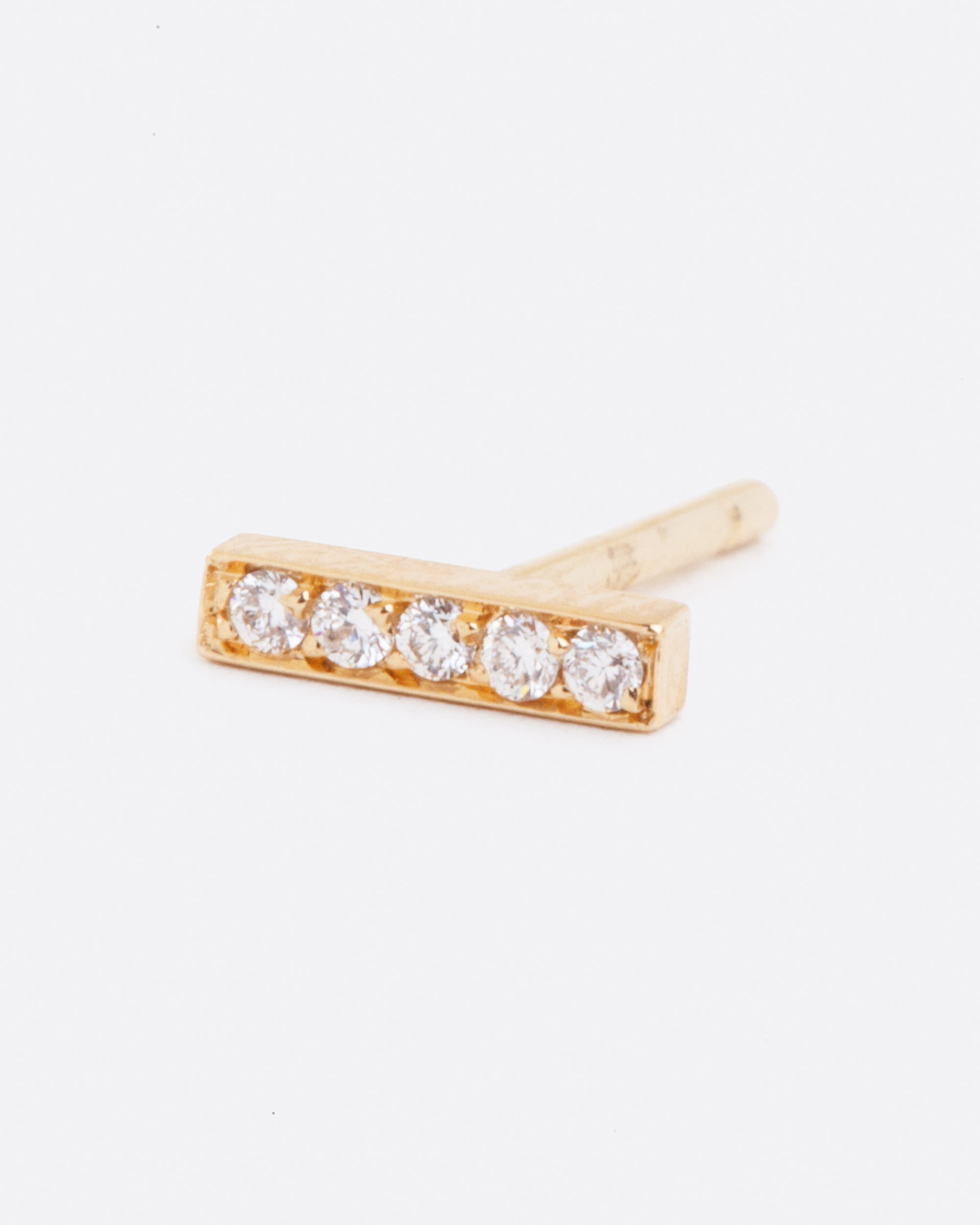 With a diamond studded edge and half moon silhouette, this dimensional stud looks to be rising in the night sky.