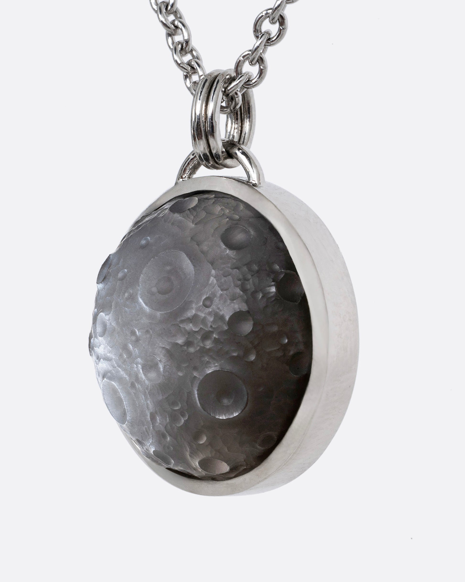Keep the moon forever in your orbit with this hand carved moonstone pendant necklace. Bezel set in platinum, this full harvest moon seems to glow just like it's counterpart above. Featuring the lunar phases on its reverse, this celestial piece was created by the hands of designer Selin Kent as part of our 'Hand of the Artist' capsule collection.