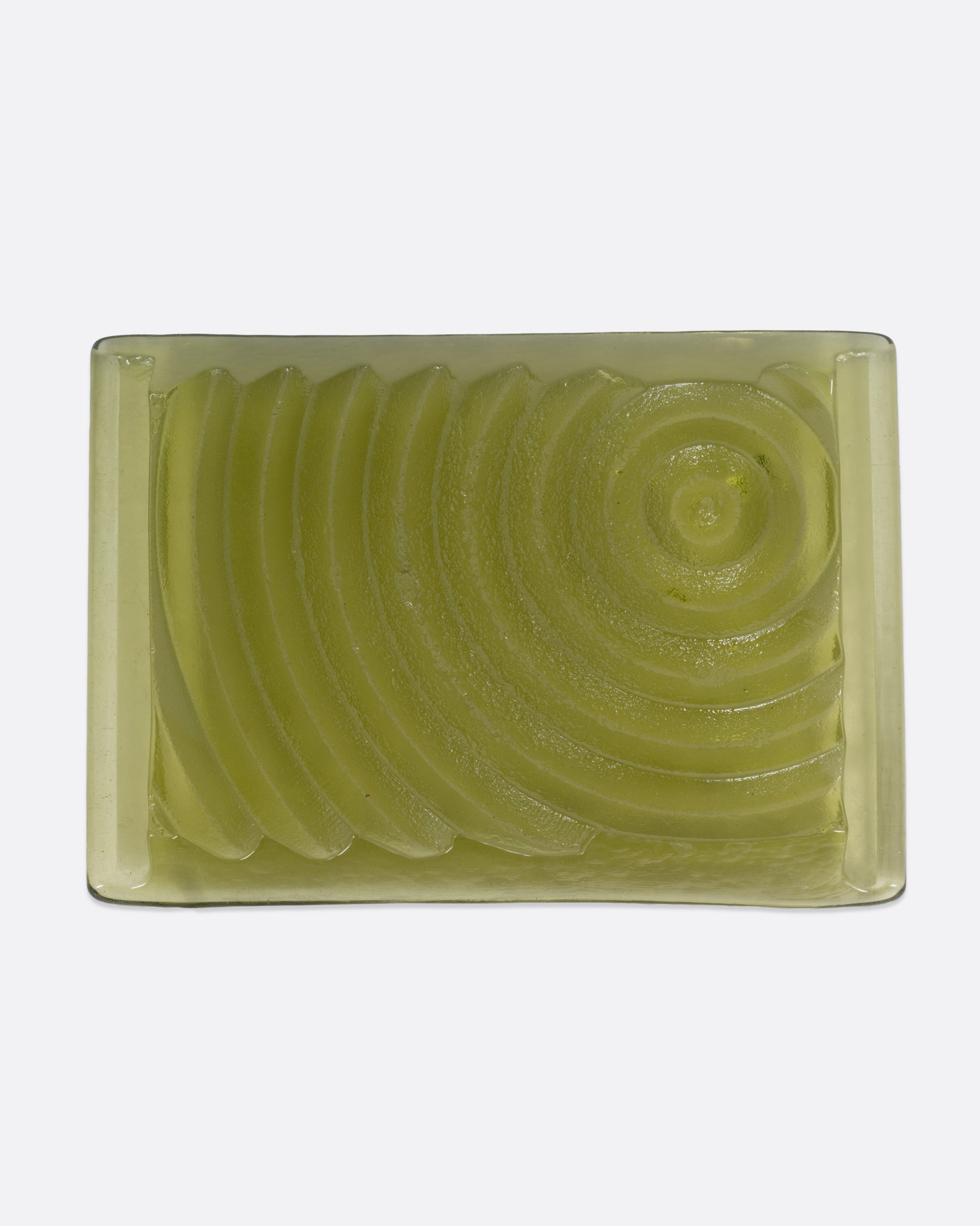 Place this cool mid century dimensional glass tray on your vanity and let it catch your jewelry at day's end.